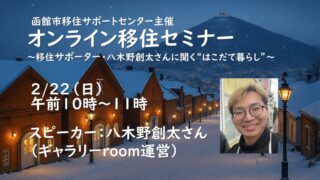 【移住】「オンライン移住セミナー~移住サポーター・八木野創太さんに聞く“はこだて暮らし”~」を開催します!(2026.2.22)