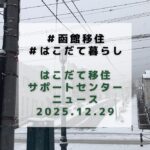 メールマガジン 2025年12月29日 2025年12月29日 まちセンスタッフ はこだて移住サポートセンターニュース 2025年12月29日号 函館市地域交流まちづくりセンター内の「はこだて移住サポートセンター」では、月2回メールマガジンを発行しています。2025年12月29日に発行したメールマガジンを下記の通り転記します。どうぞご覧ください。 ━━━━━━━━ […]