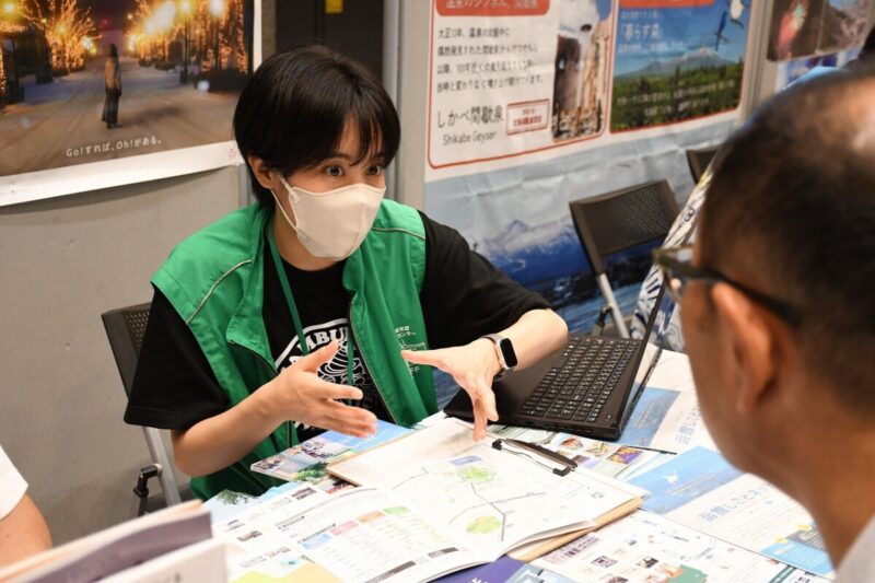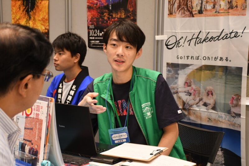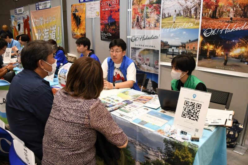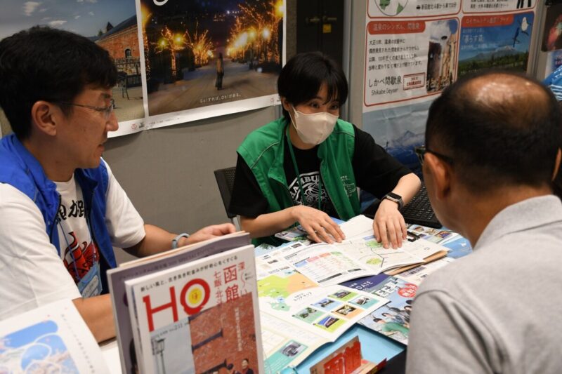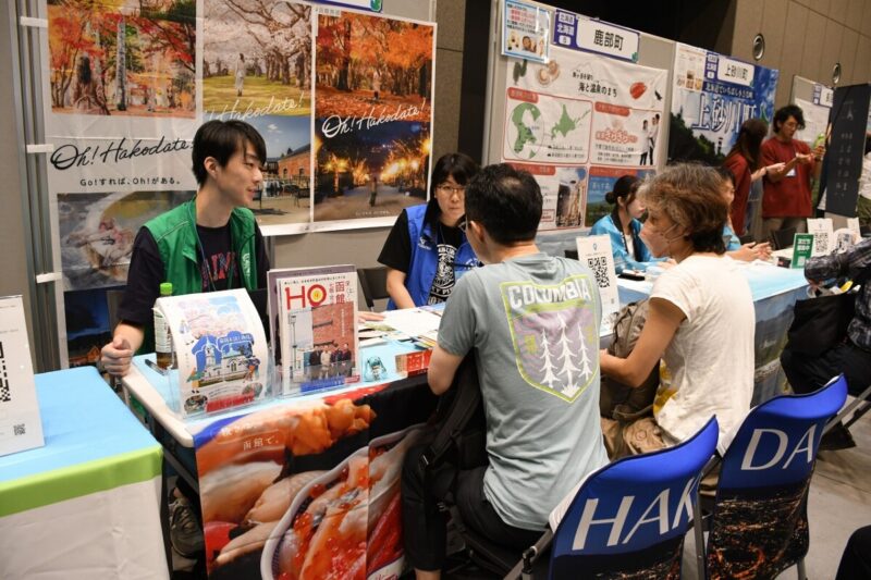 函館に行ったことはないけれど、移住に興味があるという方もおり、移住検討者受けのガイドマップや観光リーフレットを使い、函館の魅力や地理について詳しく紹介させていただきました。移住に向けて函館に滞在し、暮らしを体験してみたいという方には9月1日から受け付けを開始した「函館市お試し移住・助成金」制度をおすすめし、反応も上々でした。助成金は先着順で定員残りわずかとなっておりますので、利用を検討されている方はお早めの申し込みをお願いします。