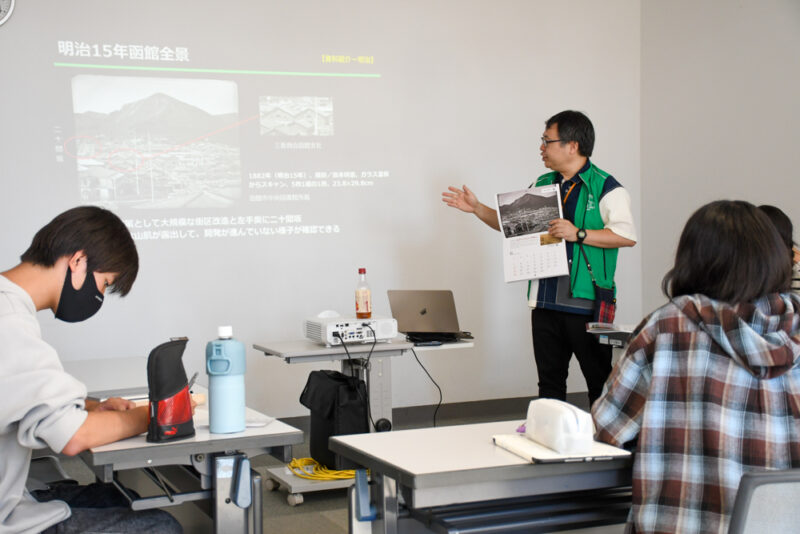 私からは「函館の歴史資料(古地図・古写真など)を読み解いて、その奥深さを伝える方法を考えよう!」を講義タイトルとして、函館の概要と歴史について、1時間程度講義させていただきました!