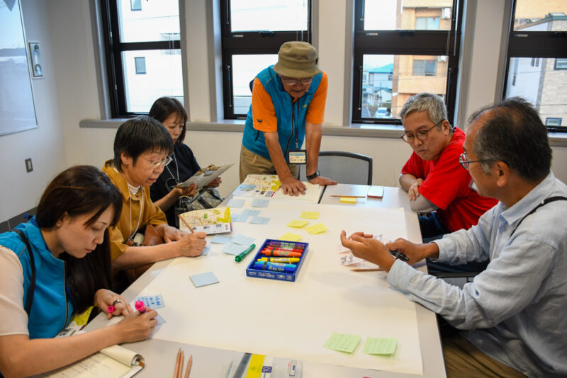 まち歩き終了後は、まちづくりセンターに戻り、コースごとのワークショップでまち歩きを振り返りました。