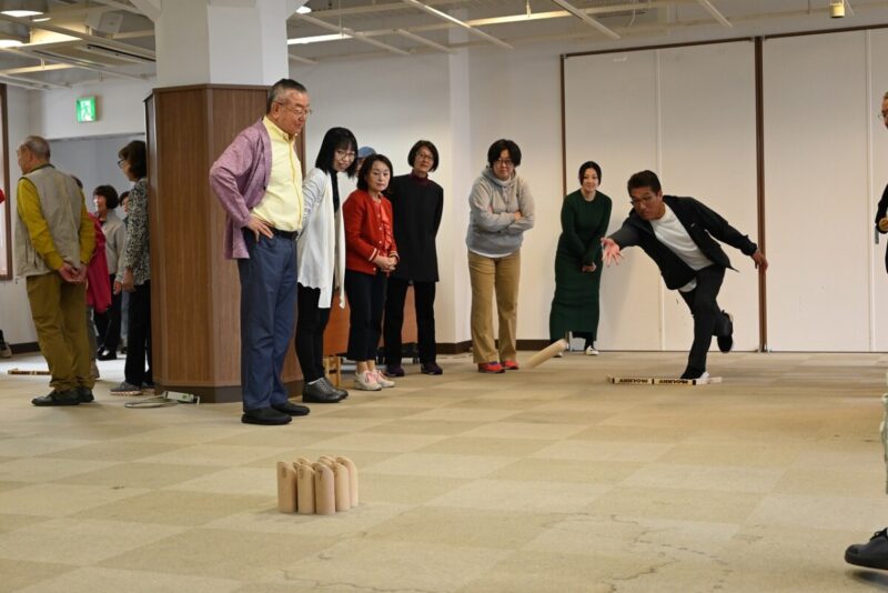 後半はフィンランド発祥のスポーツ・モルックで交流!この日がモルック初体験という会員も多かったようですが、やり始めると徐々に慣れ、会員一同大盛り上がりでした!