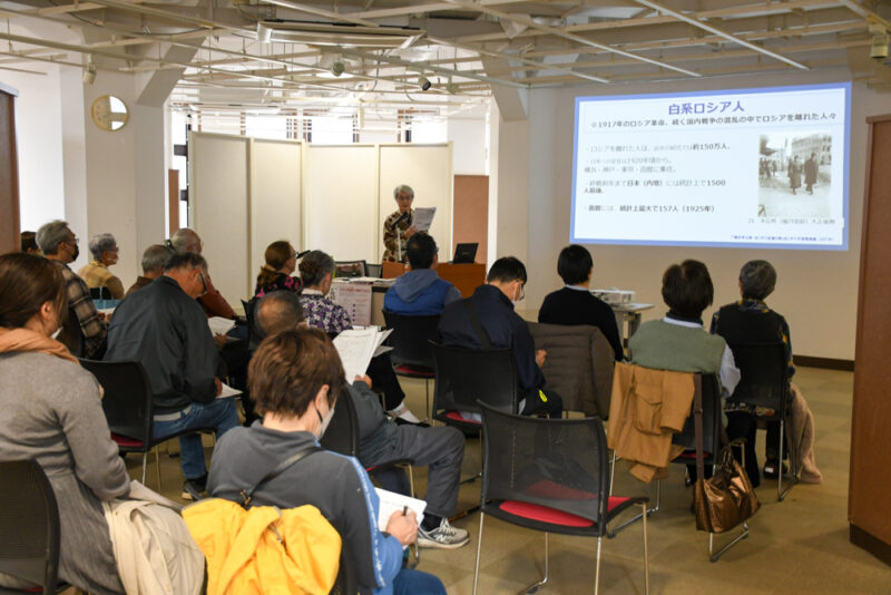 この日は「函館で生涯を終えたロシア人を通してみた20世紀前半の函館」をテーマに講演されました。