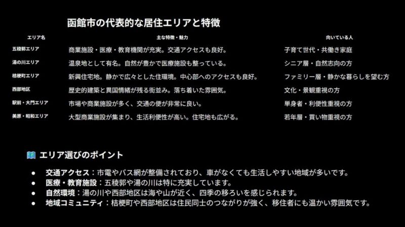 津熊さんは、広島県呉市ご出身で大阪、奈良、米国居住を経て、2019年4月に函館市に移住され、2024年7月から移住サポーターを務めています。津熊さんからの話題提供ではこれまでの函館での生活から、函館駅前地区、西部地区、五稜郭、湯の川など各エリアの特徴について紹介があり、居住地選びのポイントも解説いただきました。