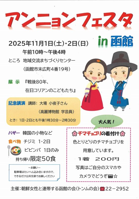 主催:朝鮮女性と連帯する函館の会(トンムの会)