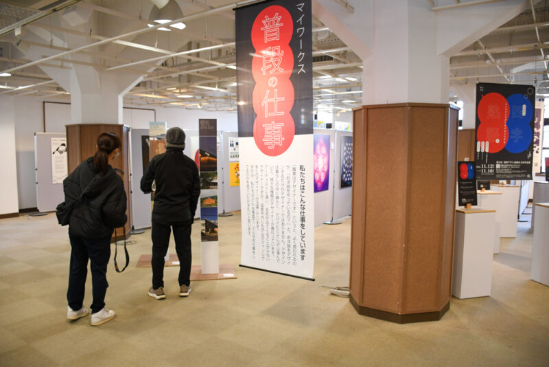 函館圏のグラフィックデザイナーや建築家らで構成されている市民活動団体「函館デザイン協議会」の会員作品展が、まちづくりセンター2階多目的ホールで開催されています。11月16日(日)まで。