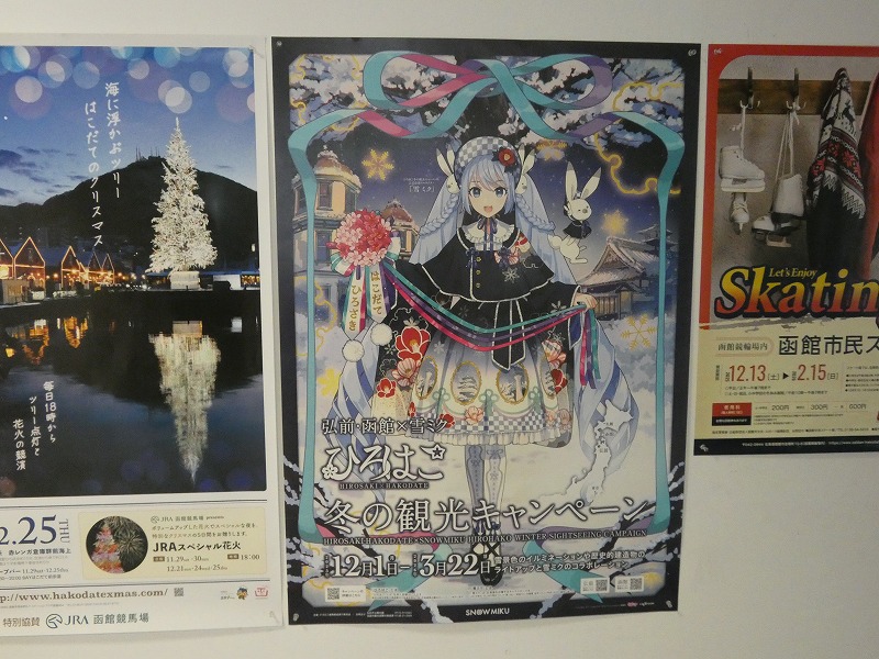 今回のポスターは「箱館奉行所」や「旧弘前市立図書館」が雪ミクと共に描かれています。
