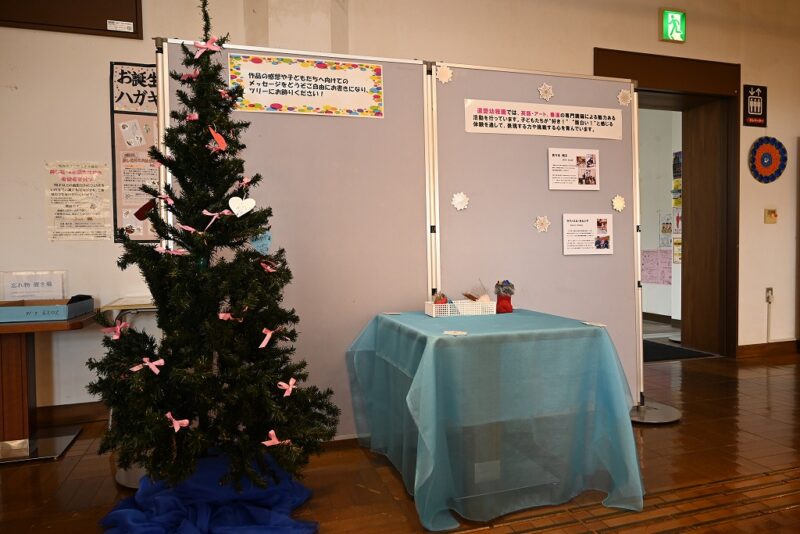 会場にはクリスマスツリーも飾られており、作品の感想や園児さんたちへのメッセージを紙に書いて飾ることができます。ご来場の際は、ぜひ一言メッセージを添えてください。