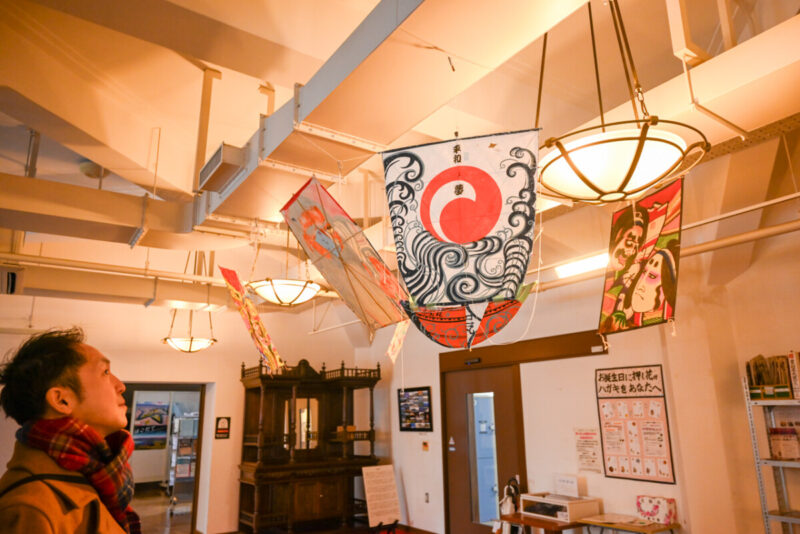 旧函館東高校教諭で「たこ先生」こと 故 梅谷利治さんの創作凧を、教え子の中田嘉明さん(NPO法人 体験塾 SUMOCCA代表)が受け継ぎ、まちづくりセンターとの共催で毎年展示を実施しています。例年中田さん監修のもと、まちづくりセンタースタッフが展示作業を担っています。