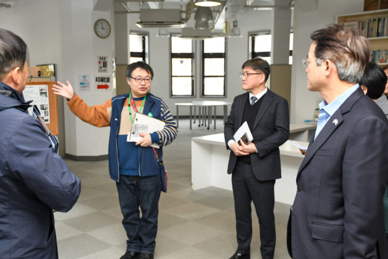 韓国高陽市からは1月12日(月・祝)に9人、今治市議会からは1月23日(金)に1人の視察があり、館内案内のほか、質疑応答では施設運営の現状やセンターの機能、取り組んでいる事業などについてお答えしました。