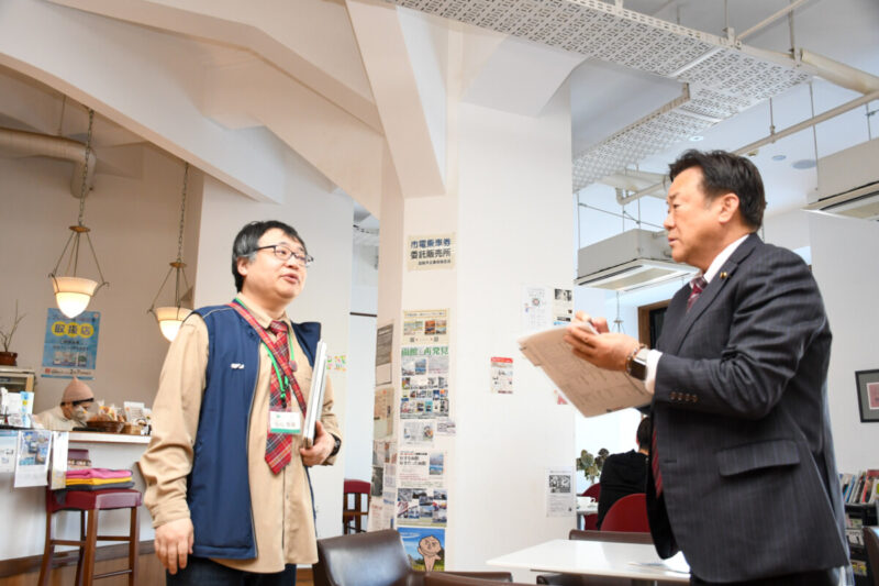 今治市議会からは、まちづくりセンターの設立経緯、改修費用などについてのご質問もいただきました。また、議会事務局と市企画部にもご同席いただきました。