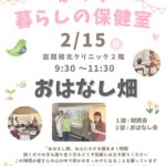 市民活動情報 2025年12月24日 2025年12月24日 まちセンスタッフ はこだて暮らしの保健室「おはなし畑」(2026.2.15) はこだて暮らしの保健室による「おはなし畑」が、2026年2月15日(日)に稜北クリニック2階にて開催されます!「おはなし畑」は心に小さな種をまく時間。聞くだけの方も語り合う方も、どうぞお気軽にお立ち寄りください。この時間 […]