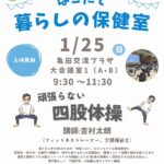 市民活動情報 2025年12月24日 2025年12月24日 まちセンスタッフ はこだて暮らしの保健室「頑張らない四肢体操」(2026.1.25) はこだて暮らしの保健室による「頑張らない四肢体操」が、2026年1月25日(日)に亀田交流プラザ 大会議室にて開催されます!豊かな人生100年のための「頑張らない」がコンセプトの体操教室です。椅子に座りながらの四股踏み、 […]