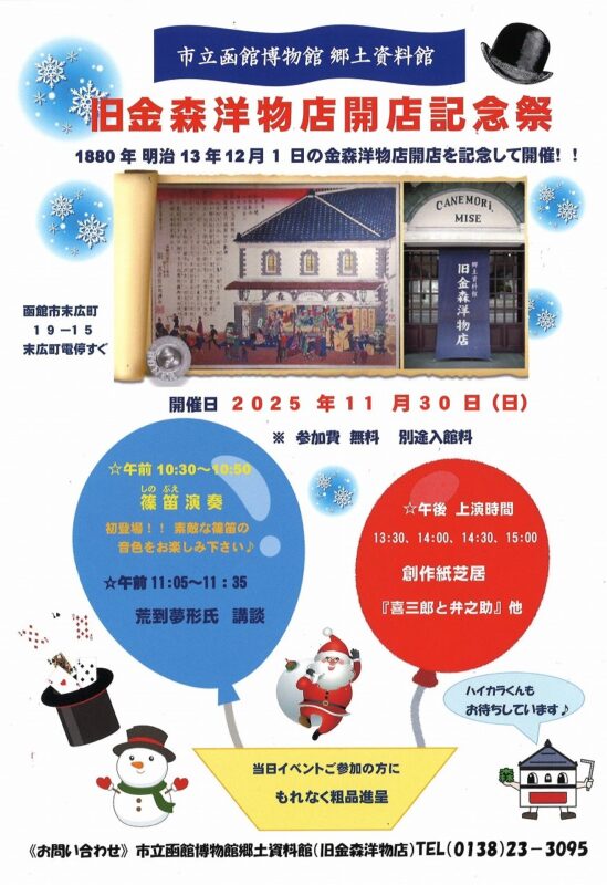 市立函館博物館郷土資料館にて「旧金森洋物店開店記念祭」が2025年11月30日(日)に開催されます!