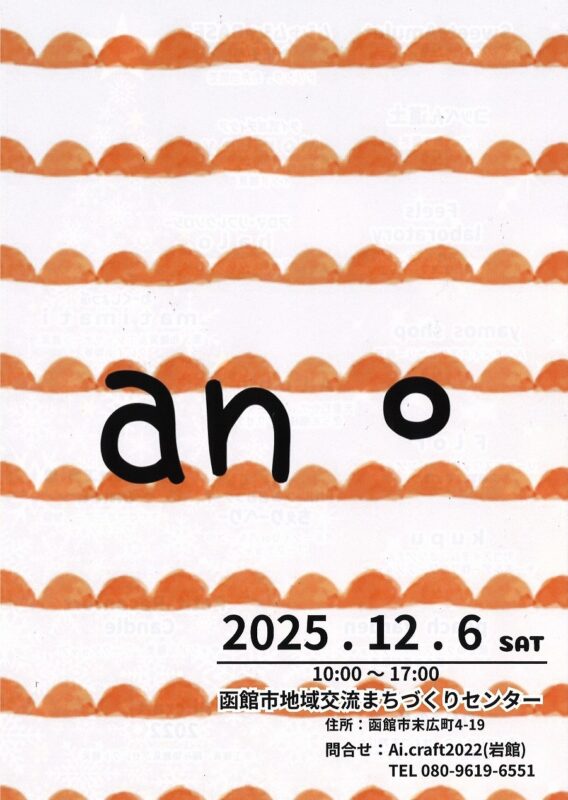 Ai.craft2022による「an。」が、2025年12月6日(土)に函館市地域交流まちづくりセンターにて開催されます!