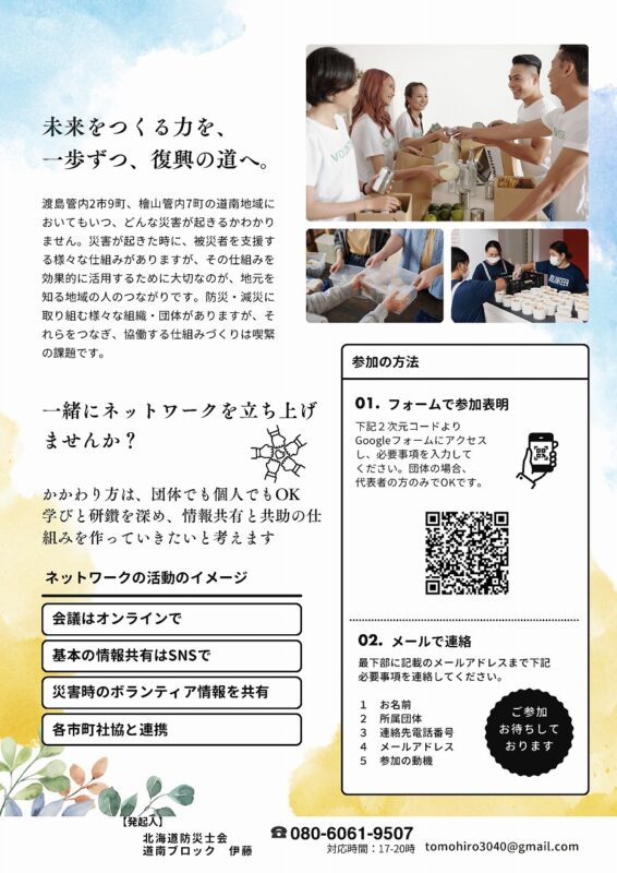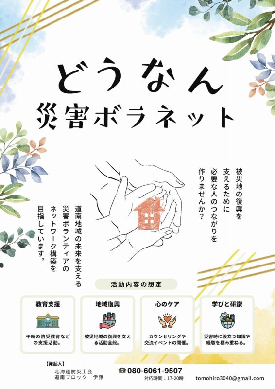 どうなん災害ボラネット 参加者募集のお知らせ(北海道防災士会 道南ブロック)