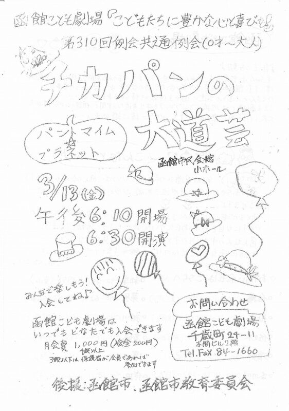 函館こども劇場「第310回例会 チカパンの大道芸」(2026.3.13)