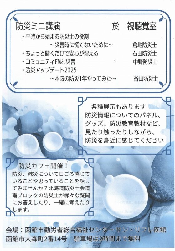 北海道防災士会道南ブロック「道南の防災を考える2026」(2026.3.14)