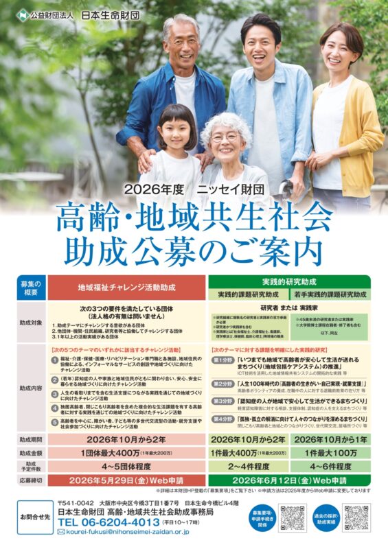 公益財団法人 日本生命財団「高齢・地域共生社会助成」(2026.3)