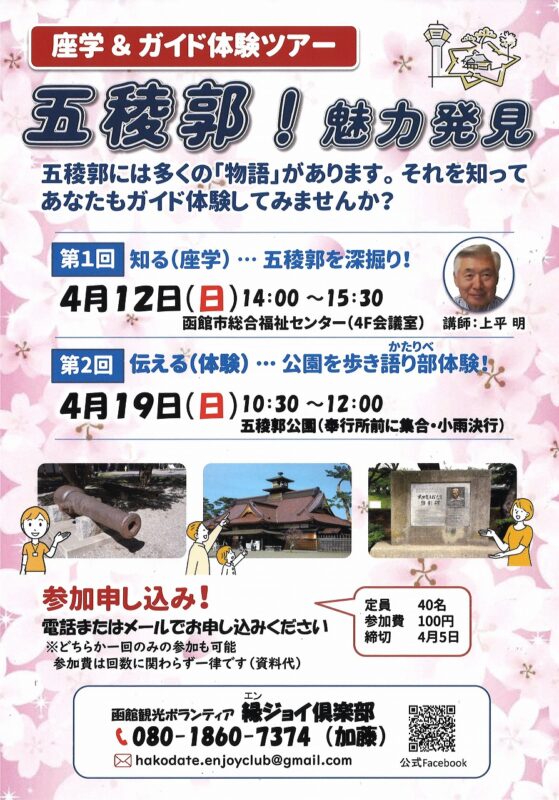 函館観光ボランティア 縁ジョイ倶楽部による『座学&ガイド体験ツアー「五稜郭!魅力発見」』が、2026年4月12日(日)と2026年4月19日(日)の2日間、開催されます!