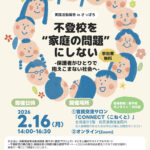 市民活動情報 2026年2月5日 2026年2月5日 まちセンスタッフ 認定NPO法人北海道NPOファンド&株式会社らっく「不登校を“家庭の問題”にしない-保護者がひとりで抱えこまない社会へ-実践活動報告inさっぽろ」 本企画は、休眠預金等活用法助成「親サポ×就労プロジェクト 子どもと親のサステナブルサポート~不登校児の親の孤立・孤独を防ぐ持続可能な就労サポート~」(2024年度物価高騰及び子育て対応支援枠)事業の一環として開催されます […]